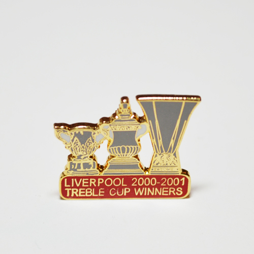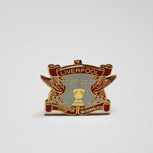 An enamel badge, which depicts the very succcessful year 2001, when Liverpool won