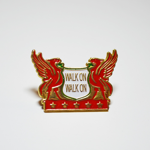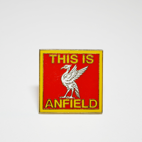 The famous "This is Anfield" sign in the form of a badge. The sign was created during